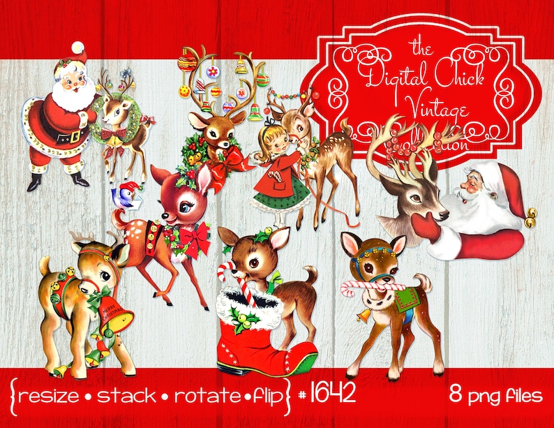 Vintage Christmas Images, Deer Clip Art PNG, Digital Download