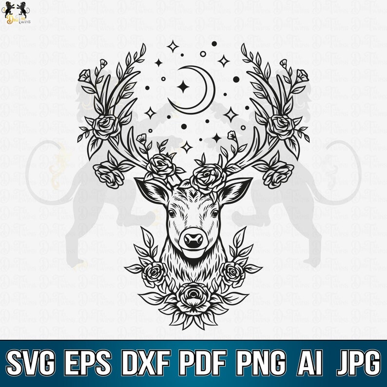 Deer With Flowers Svg, Deer Head Svg, Deer Clipart
